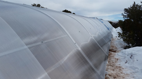 We got *most* of the Lexan installed before the next big snowstorm, and used tarps on the framing and boards on the grow beds to protect the rest.