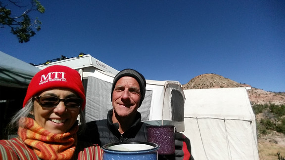 After our last post about the tipi back when temps were in the 40s-70s, my cousin Jenny (in southern New Mexico) generously offered to let us borrow her Montana Canvas wall tent and wood stove. We jumped at the offer, knowing this would be a hugely helpful addition to our camp to get us through winter -- but in typical Kimi and Chip fashion, we were in the midst of prepping for the greenhouse, and thought "we'll come down some time in the next 6 weeks..."